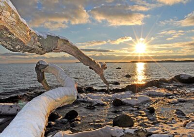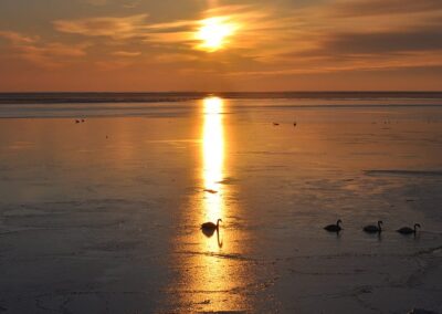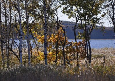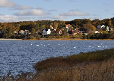 Wenn die Tage kürzer werden, kleidet sich die Insel in Rot- und Goldtöne. Die Wälder des Jasmund leuchten, Nebelschwaden ziehen über den Bodden, und die klare Herbstluft macht jede Wanderung zu einem Erlebnis. Jetzt ist auch die perfekte Zeit für Vogelbeobachtungen: Kraniche, Gänse und viele andere Zugvögel rasten auf der Insel.