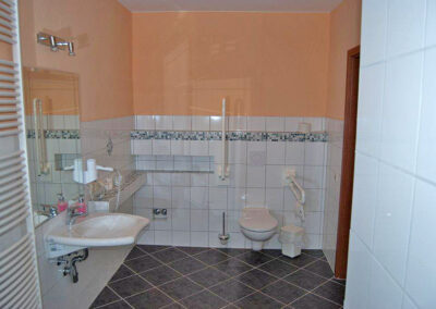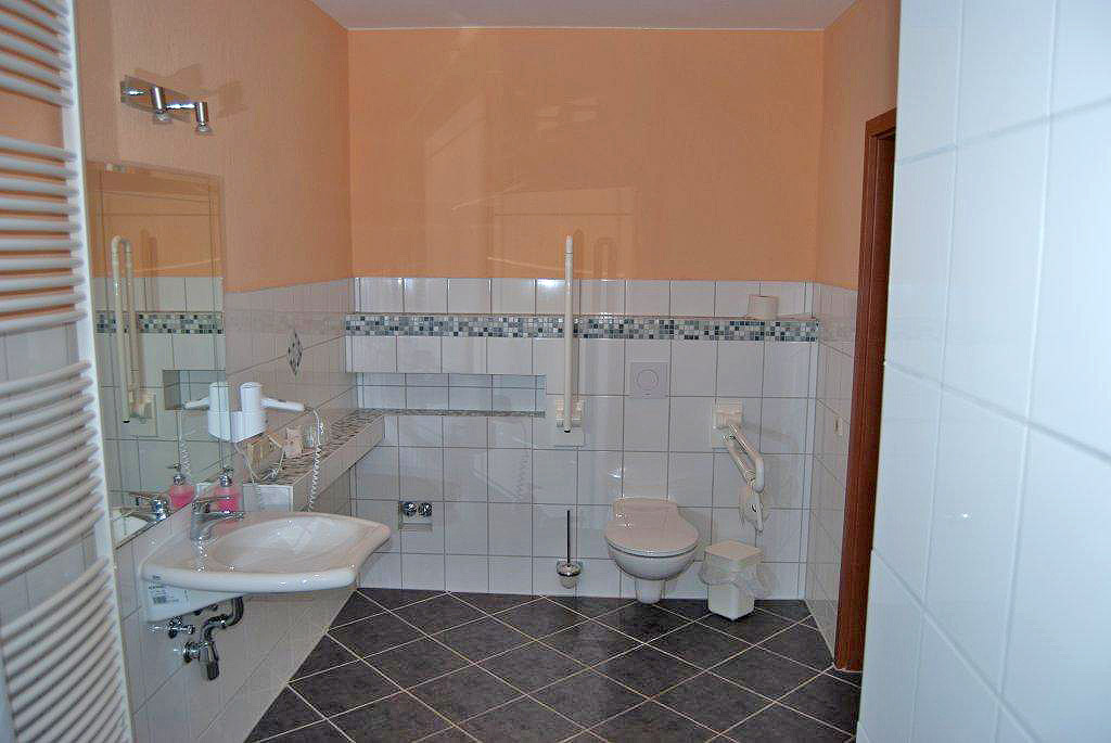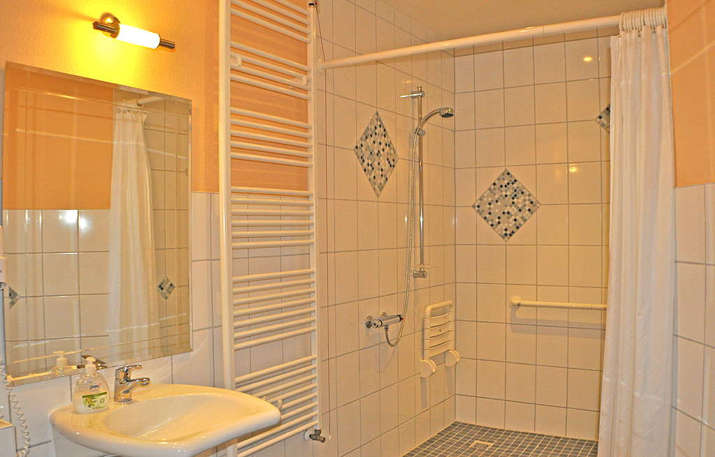 Damit Urlaub für alle möglich ist, bieten wir dir Zimmer mit barrierefreier Ausstattung: stufenloser Zugang, schwellenlose Dusche mit Sitz, unterfahrbares Waschbecken und Haltegriffe am WC. Auch Rezeption und Frühstücksraum sind stufenlos erreichbar. So wird dein Aufenthalt unkompliziert und entspannt.
